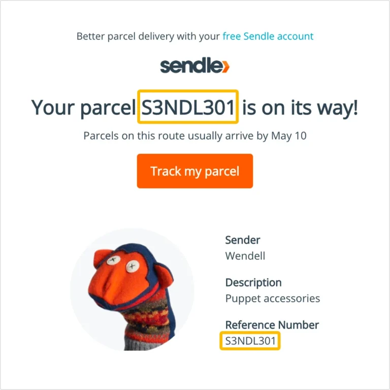 Your parcel tracking number can be found in confirmation or notification emails you’ve received. The parcel tracking number is also shared with your Sendler so they can keep track of the shipment progress via the Sendle tracking tool. Likewise, you’ll both be notified when the parcel completes its journey. Need more help with parcel tracking? Check our support article to learn more.